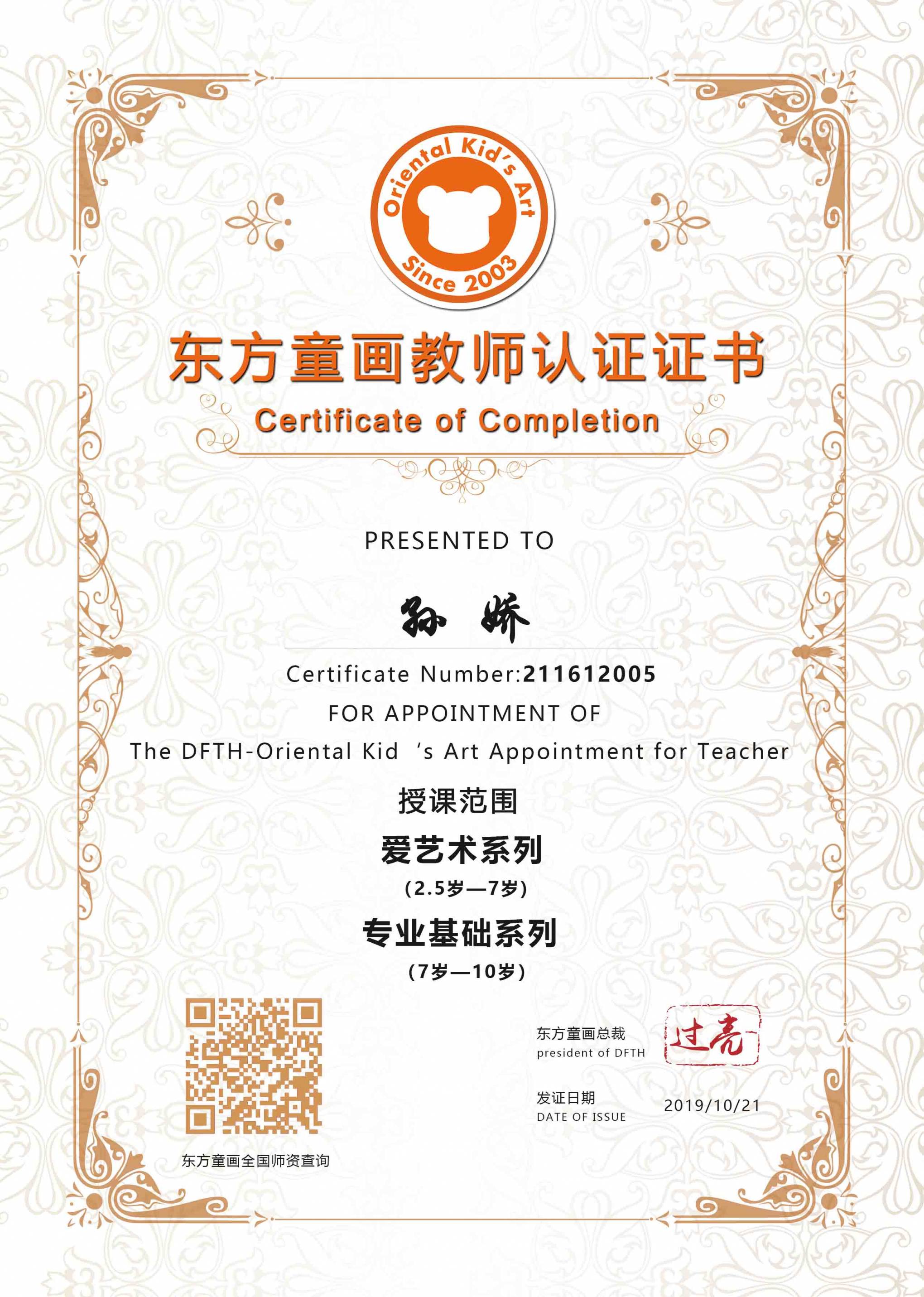 认证编号:211612005●孙娇