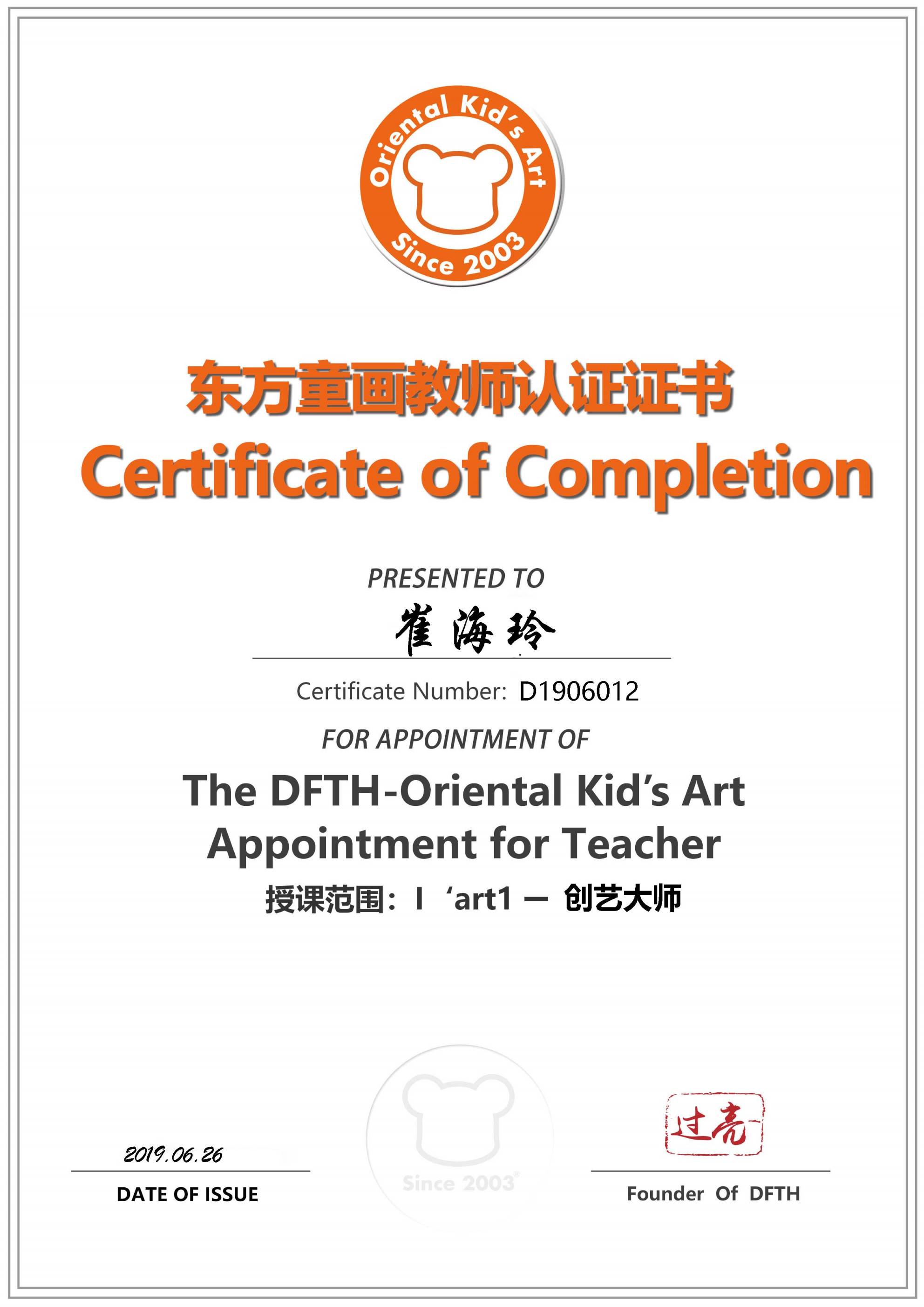 认证编号:D1906012●崔海玲