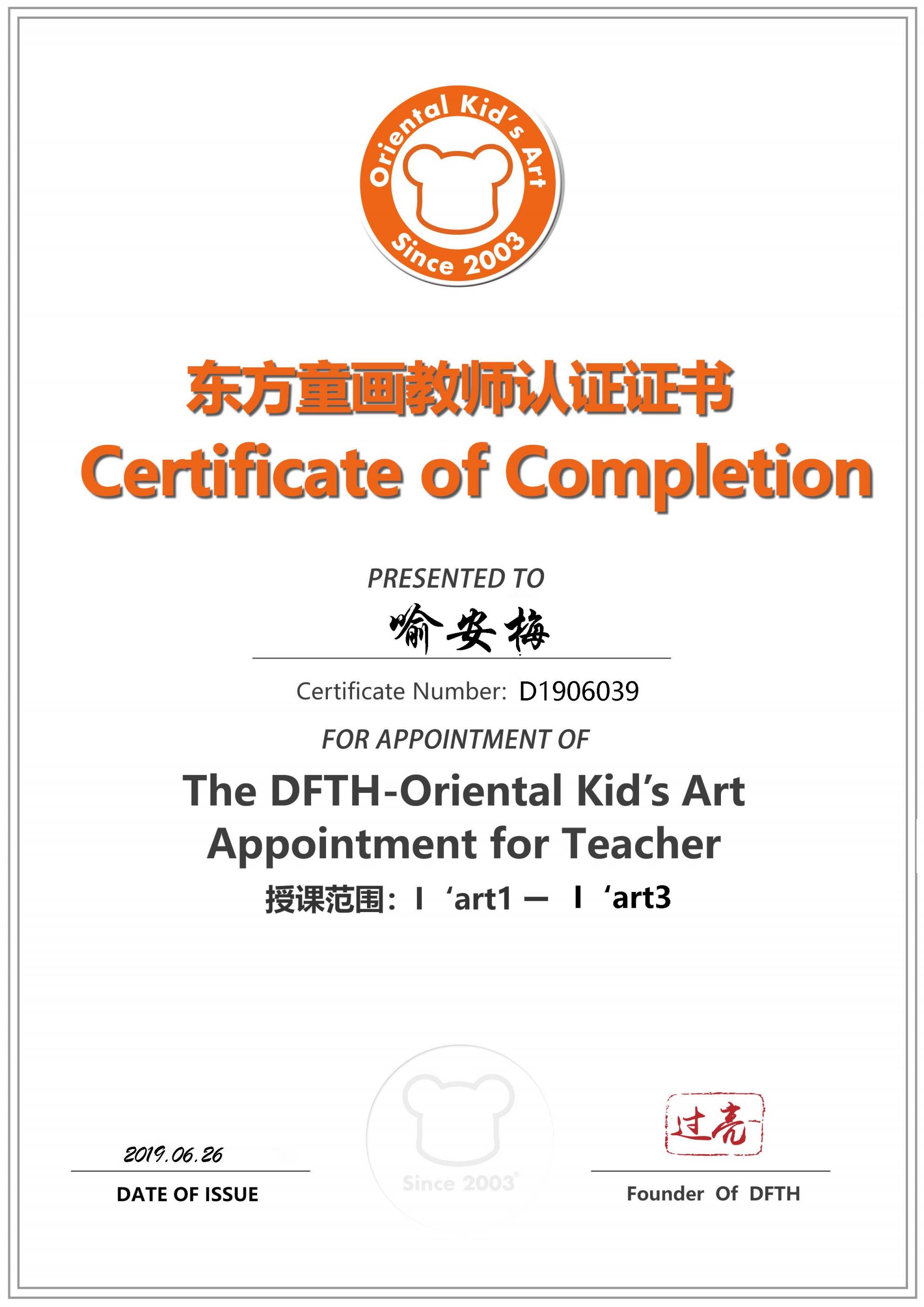 认证编号:D1906039●喻安梅