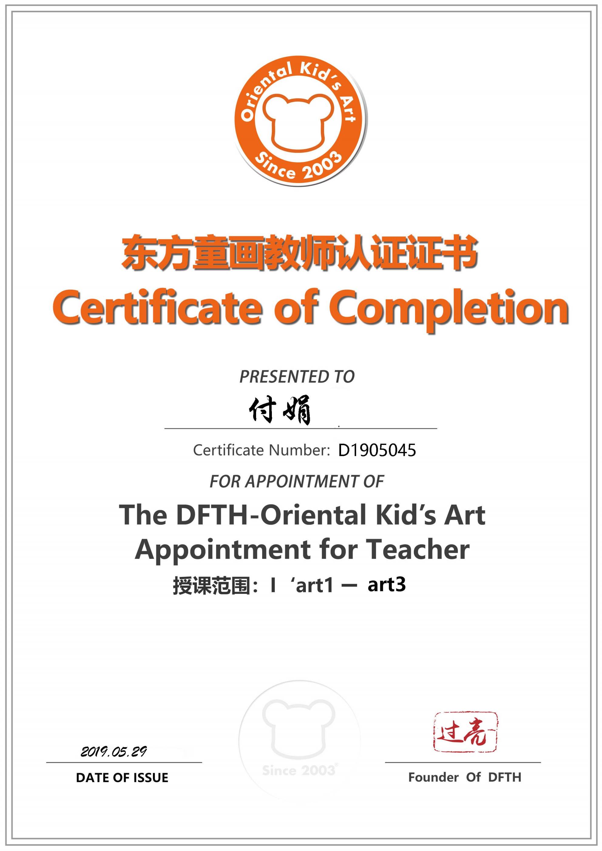 认证编号:D1905035●扶欣