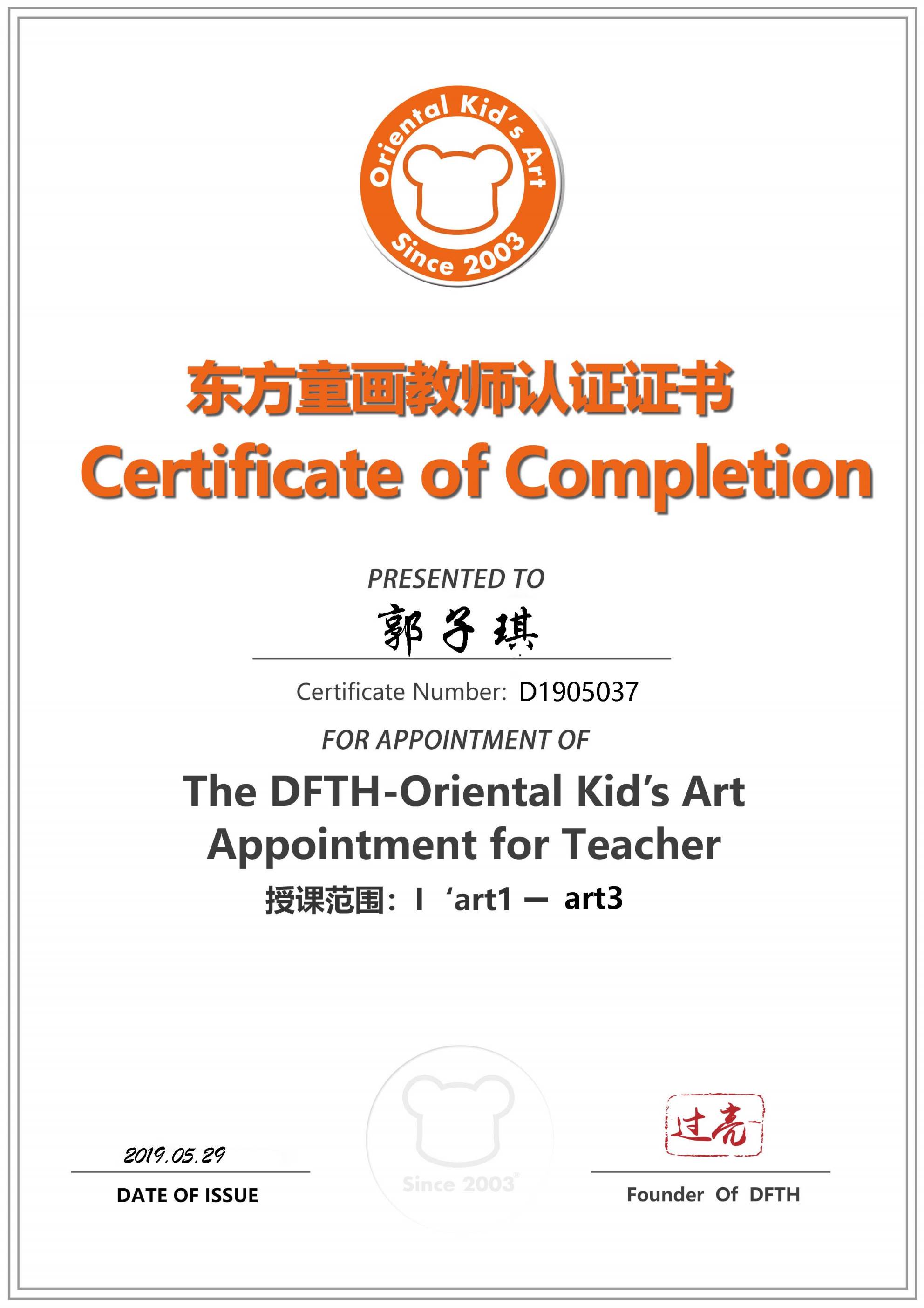 认证编号:D1905037●郭子琪