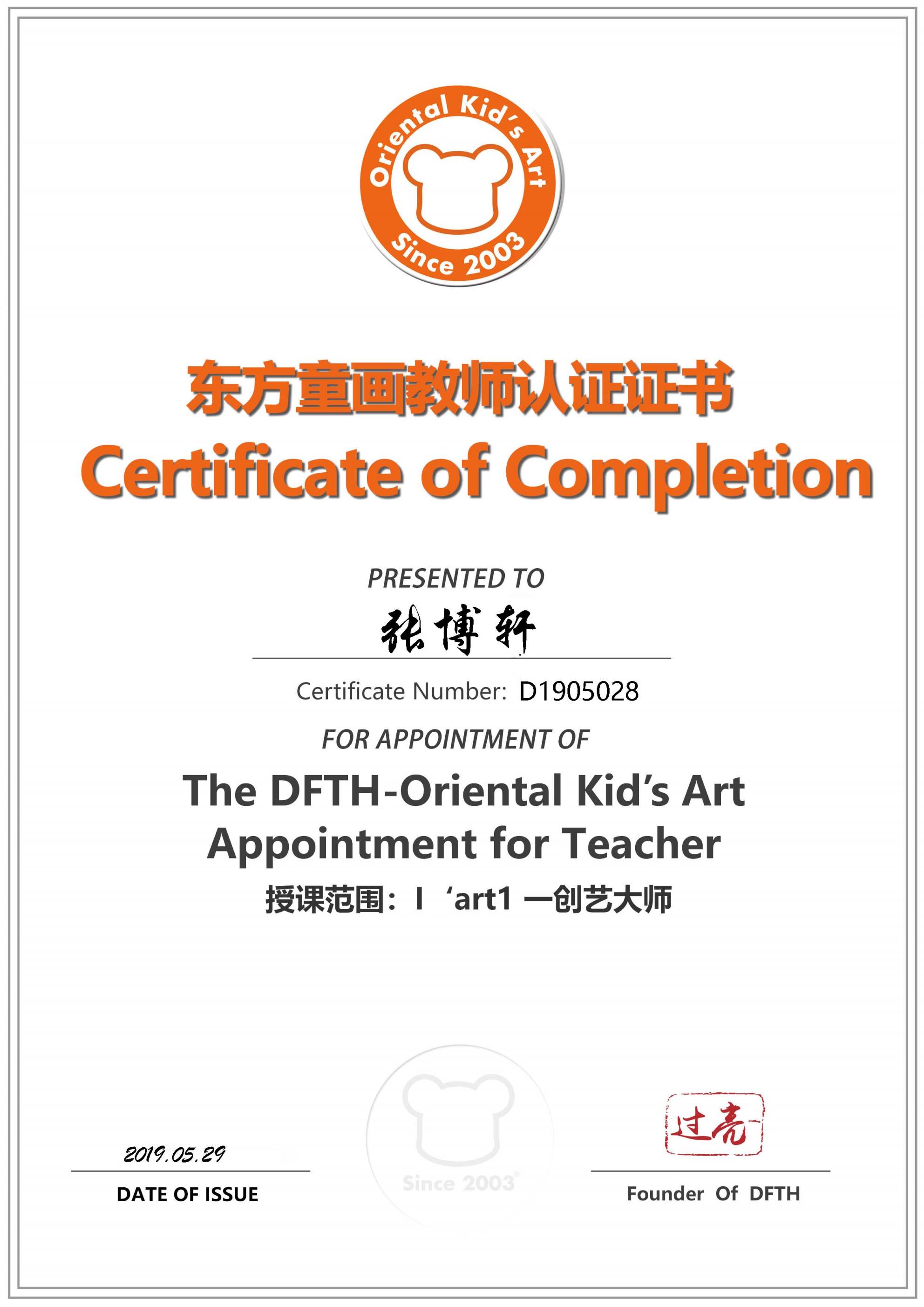 认证编号:D1905028●张博轩
