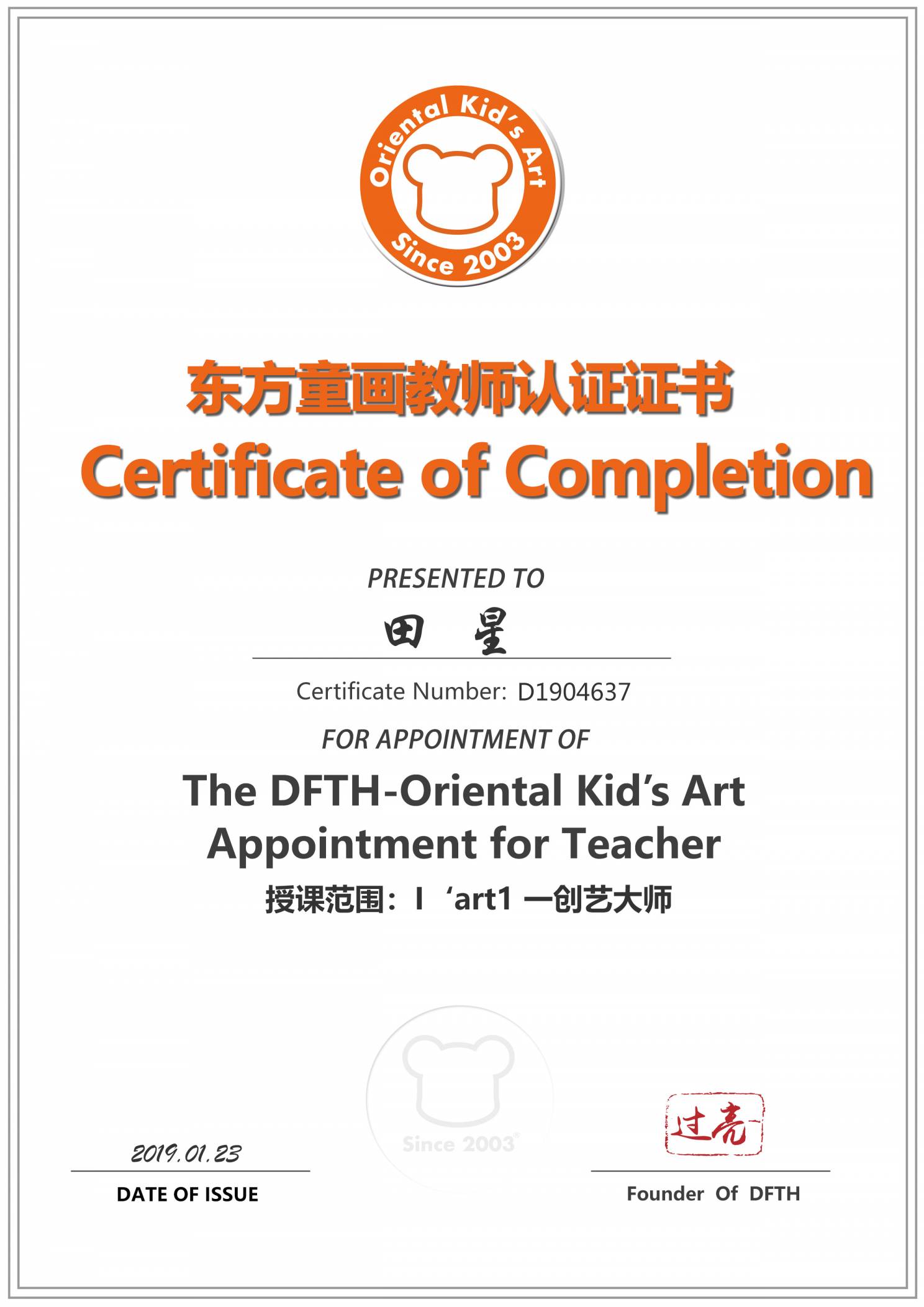 认证编号:D1904637●田星
