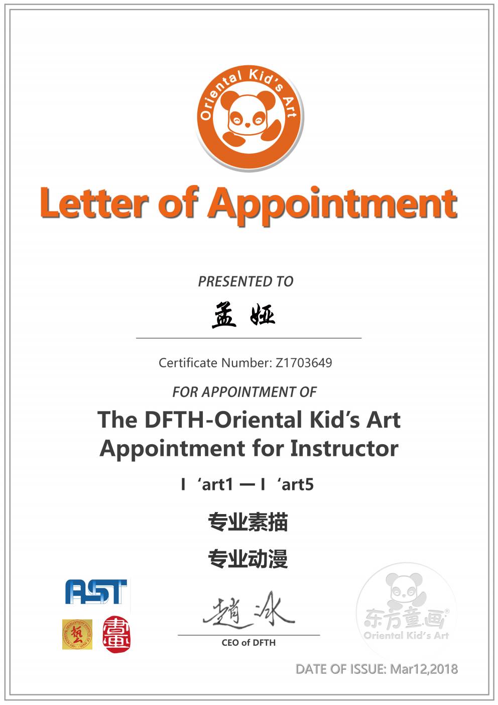 认证编号:Z1703649●孟娅