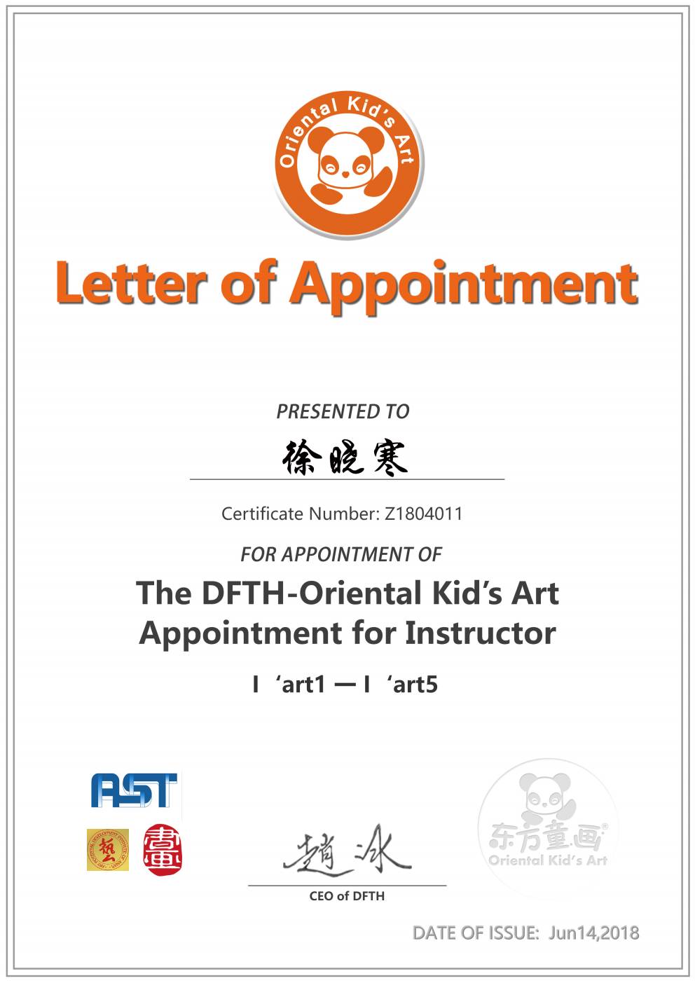 认证编号:Z1804011●徐晓寒