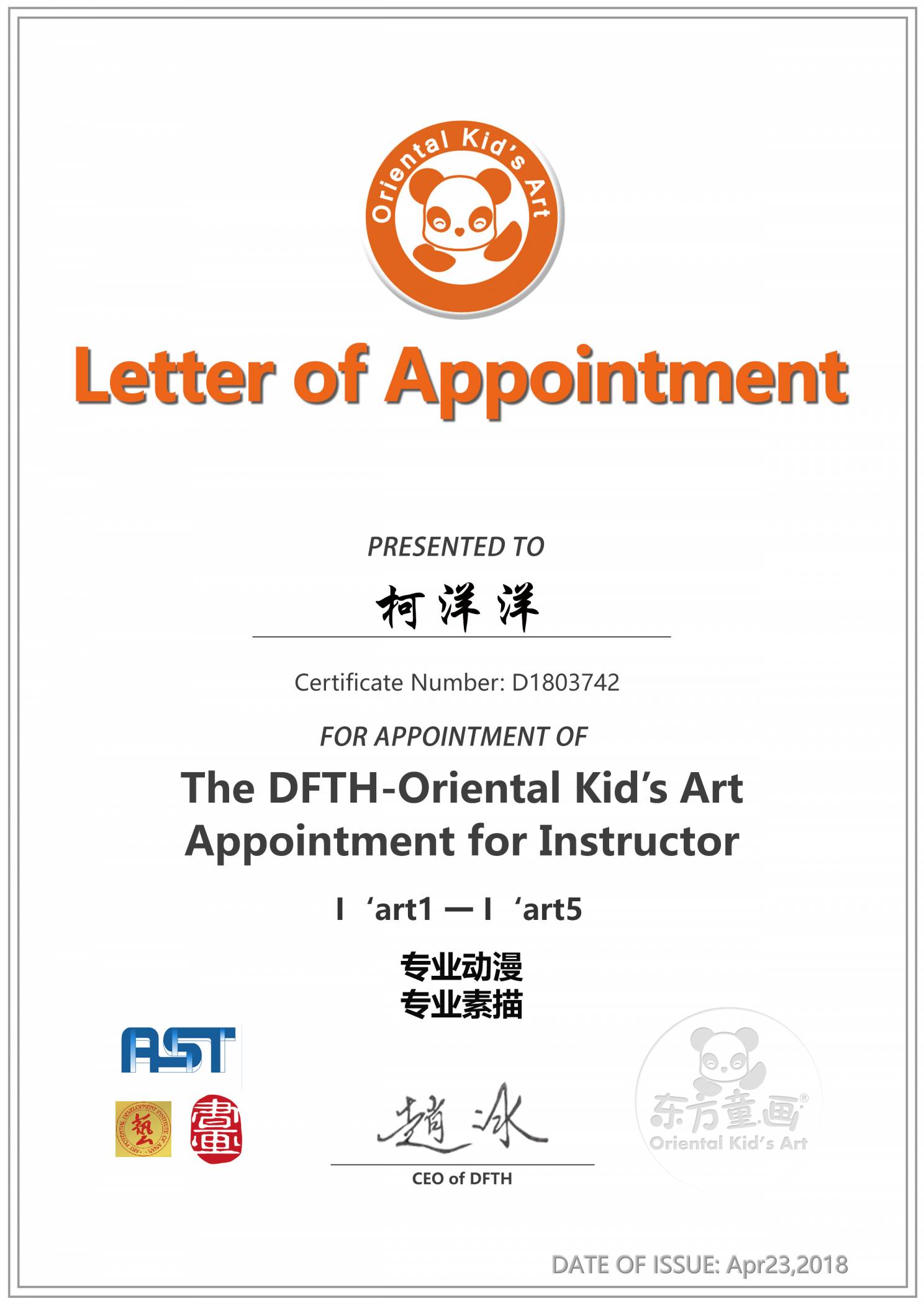 认证编号:D1803742●柯洋洋