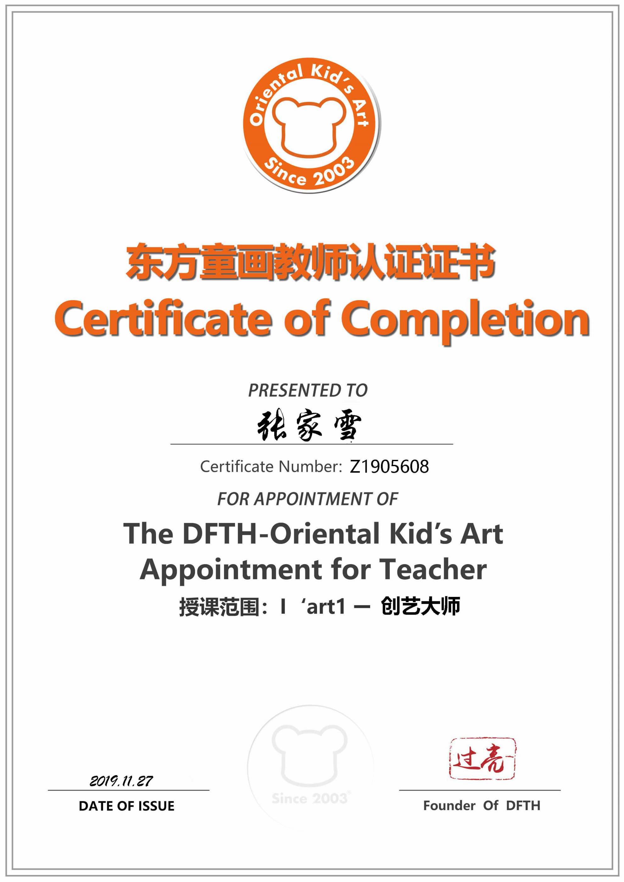 认证编号:Z1905608●张家雪