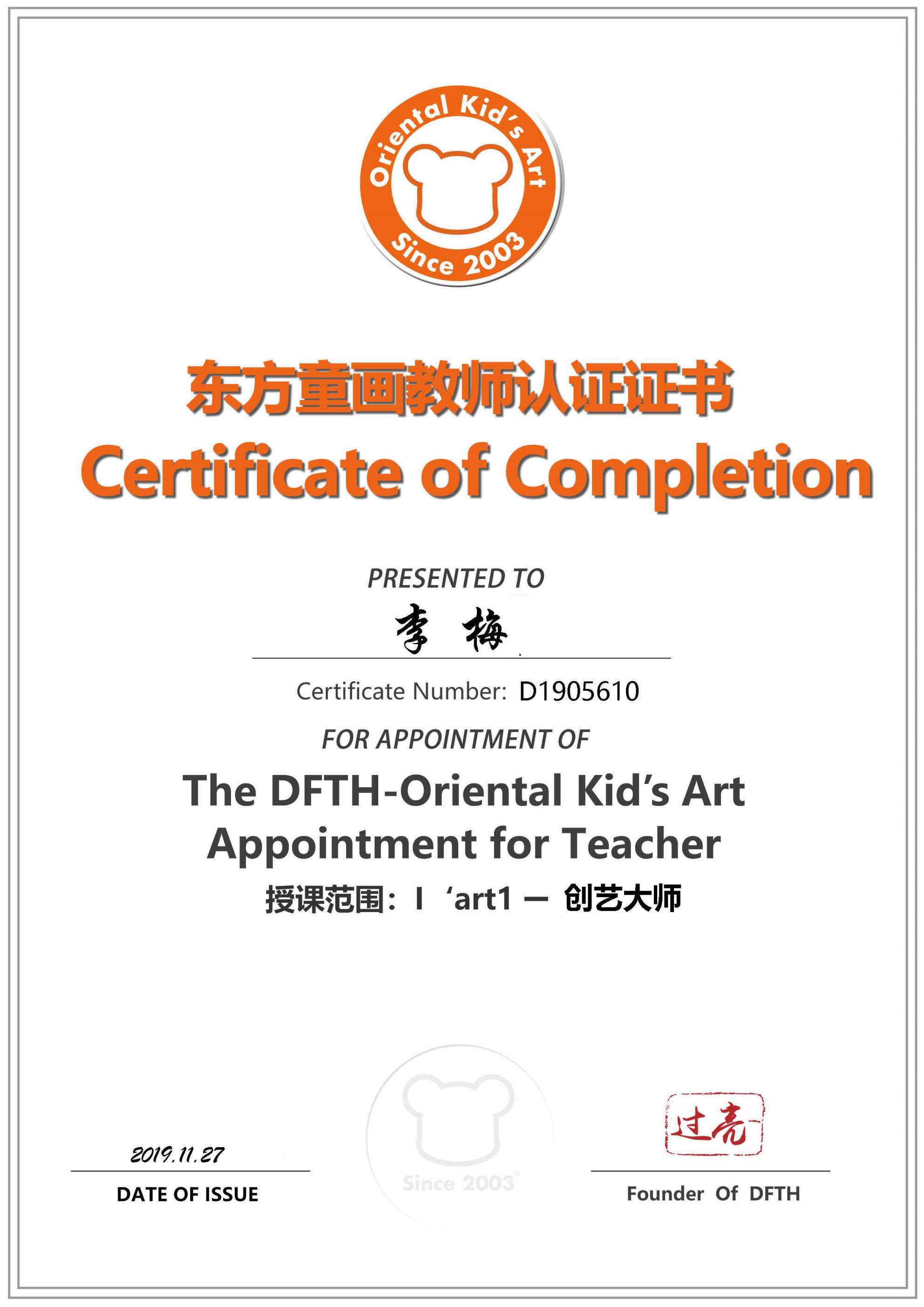 认证编号:D1905610●李梅