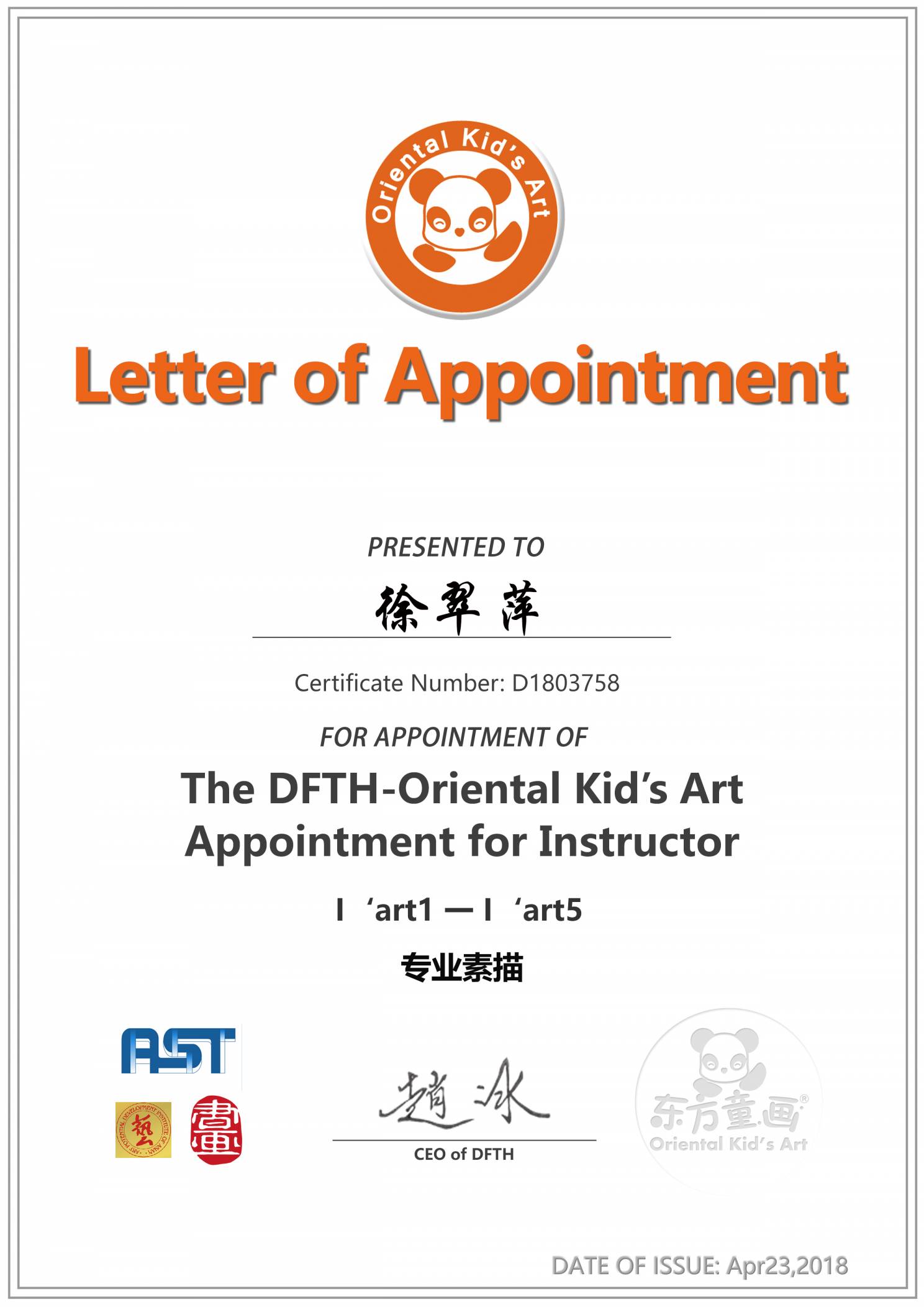 认证编号:D18037582●徐翠萍
