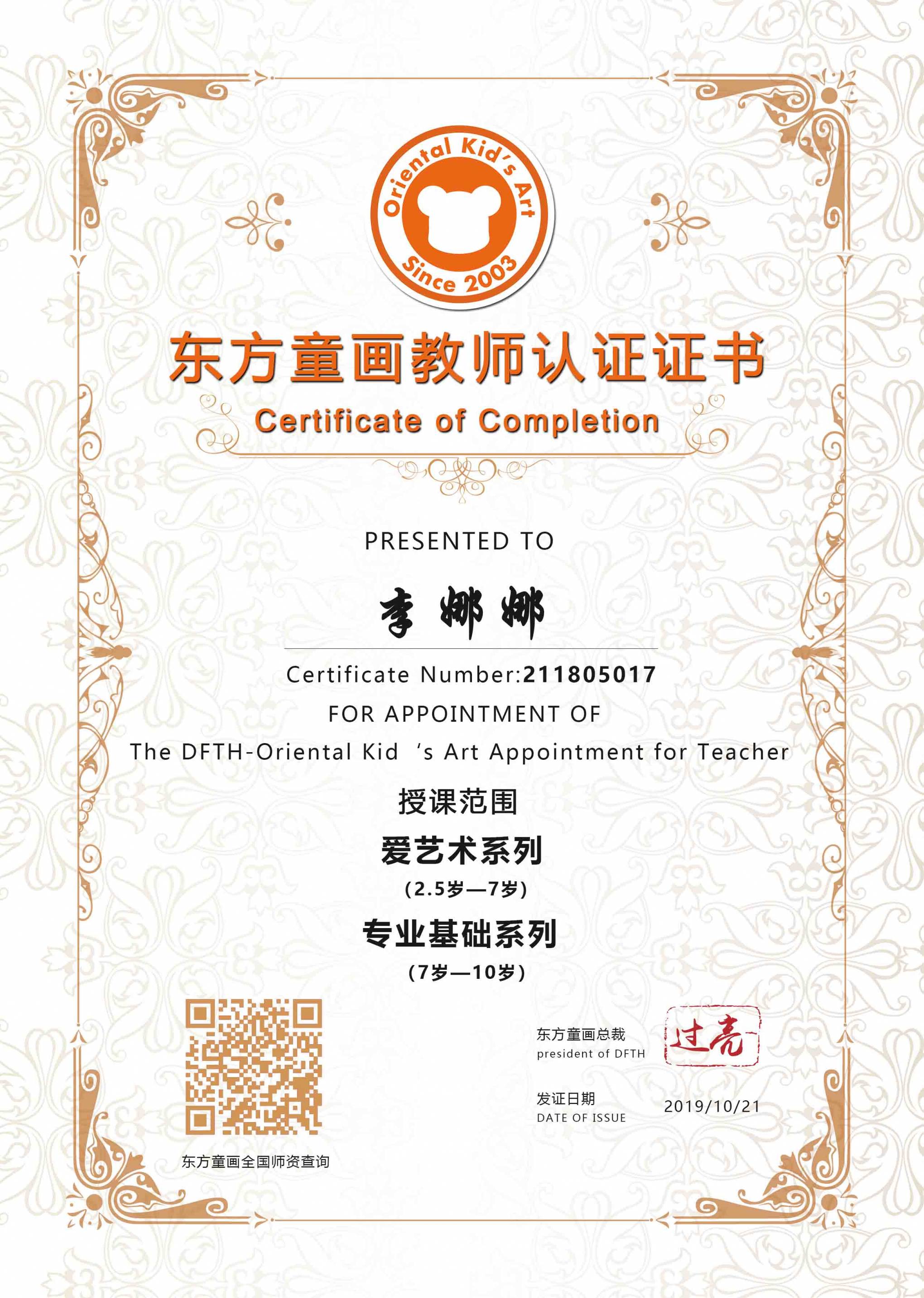 认证编号:211805017●李娜娜