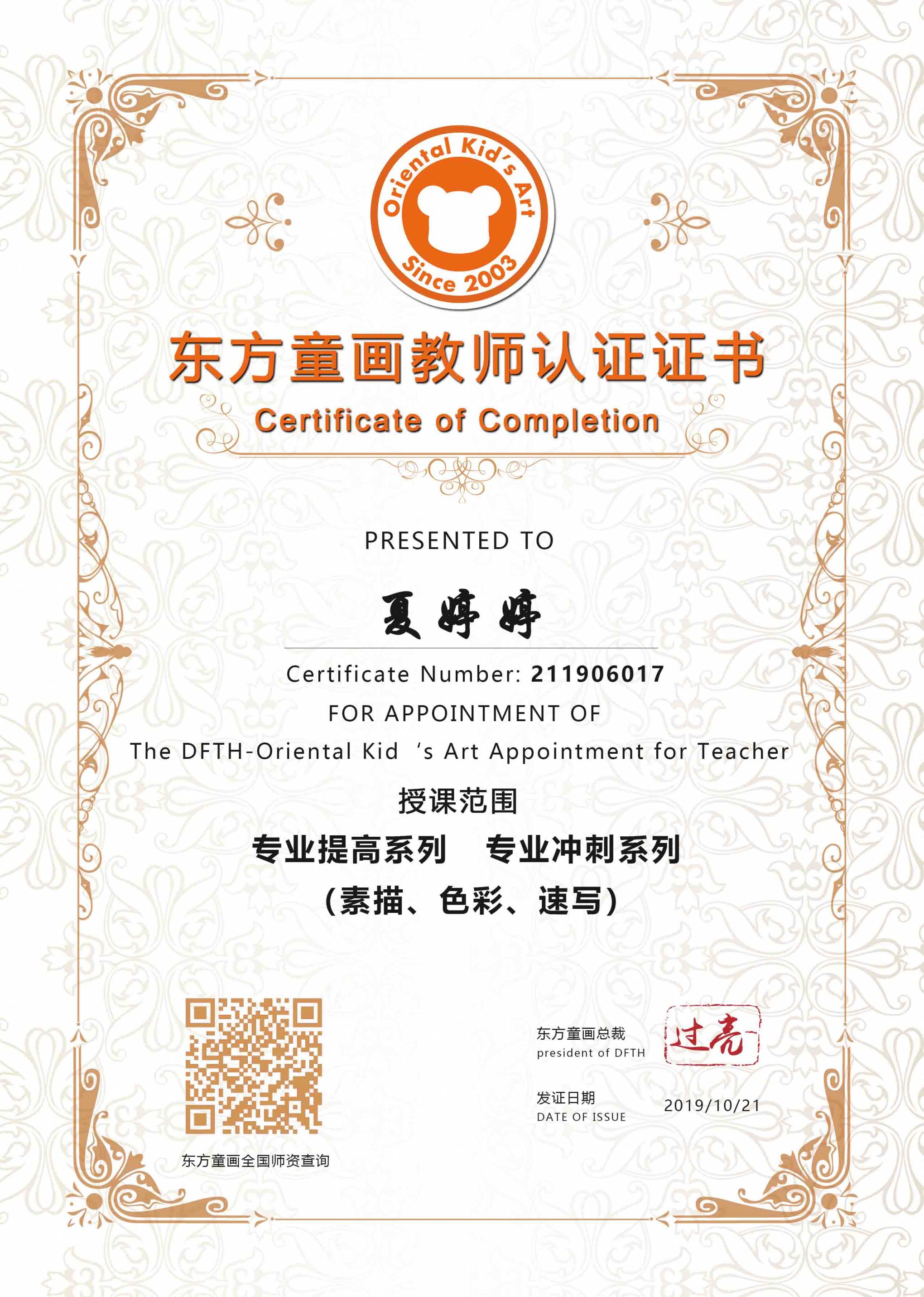 认证编号:211906017●夏婷婷