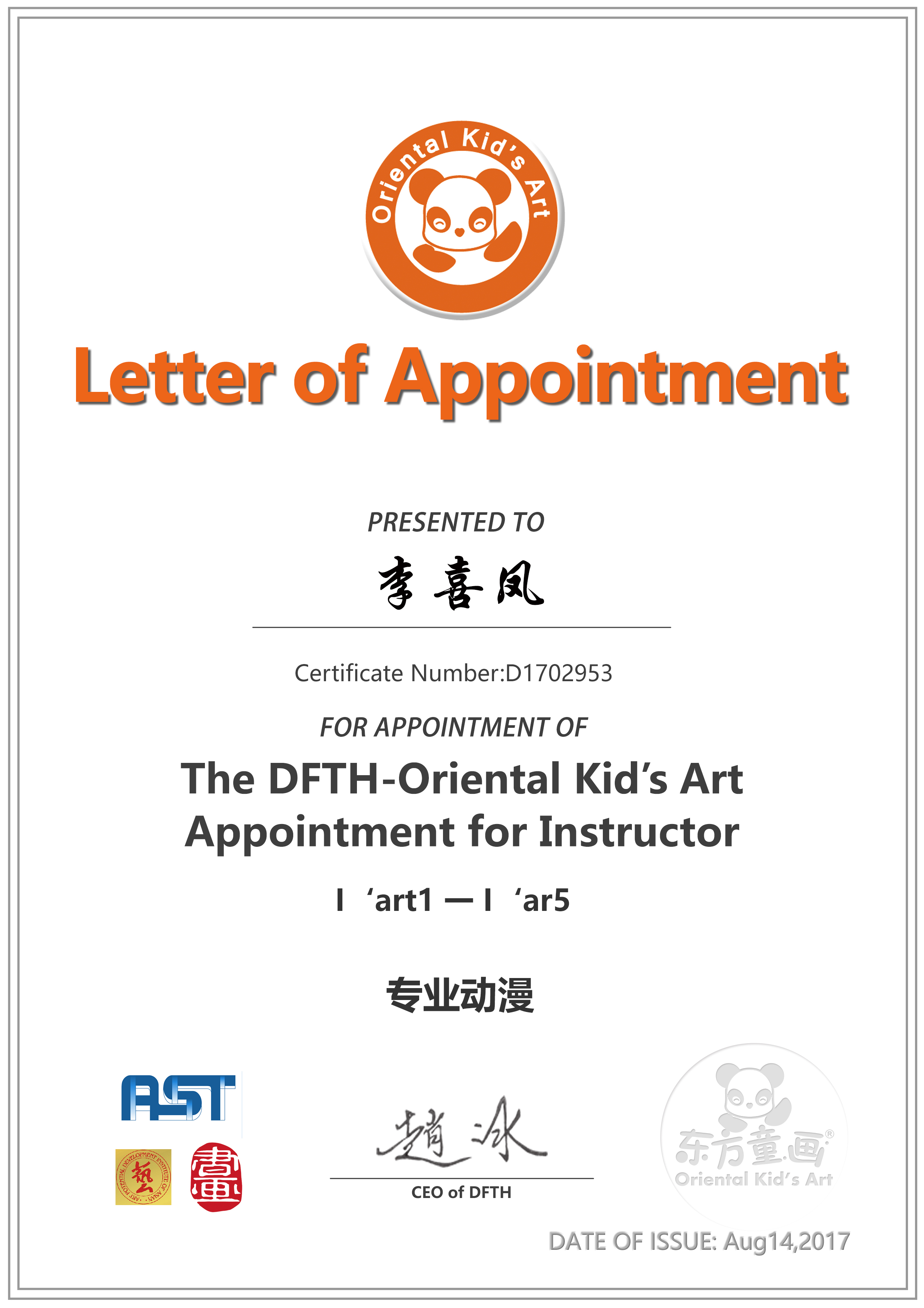 认证编号:D1702953●李喜凤
