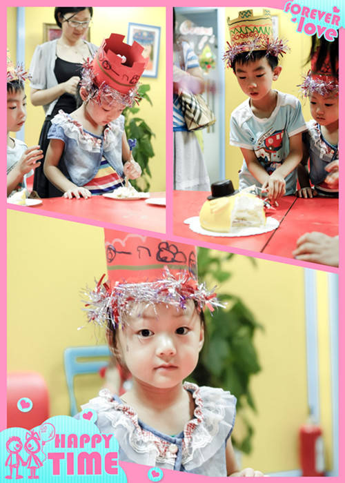 小朋友们一起切了生日蛋糕,许愿,品尝着美味蛋糕,心里美滋滋的~