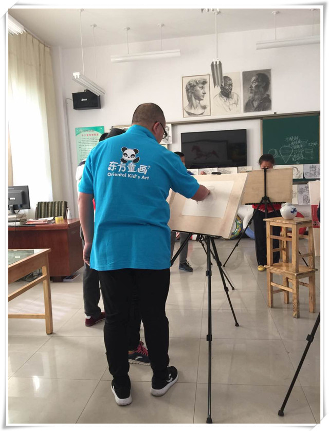 东方童画创始人赵冰老师现场授课,孩子们认真作画,教室里只留下铅笔划过画纸时的“刷刷”声。