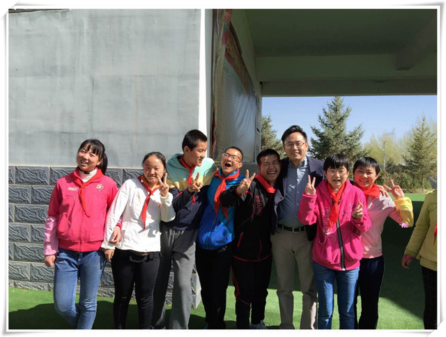 酒泉特殊教育学校教师与东方童画创始人赵冰老师和东方童画总经理过亮先生合影,感谢你们为这群特殊的孩子提供爱的帮助。