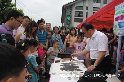 著名书画家陈冠宁先生在现场泼墨作画,引来家长和孩子们的观赏。