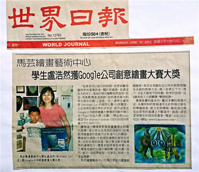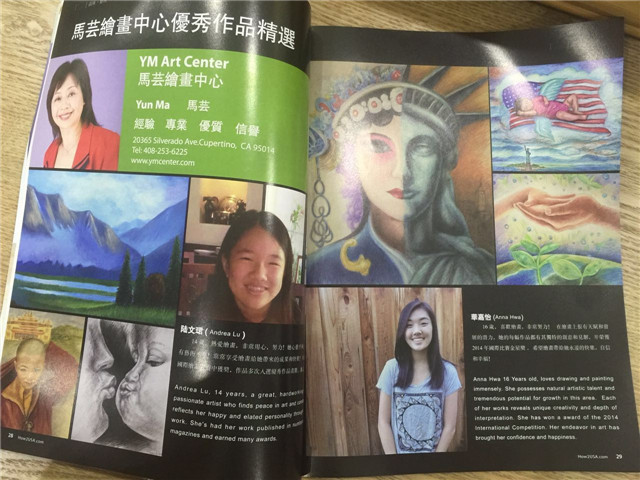 (刊登于《美国通》杂志上的马芸艺术中心优秀学生作品)
