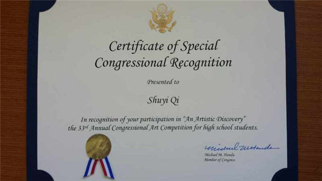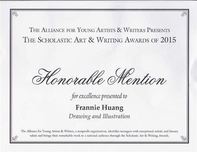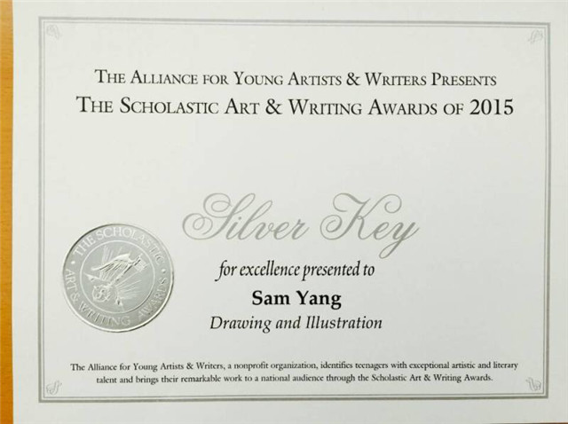 学生杨其蒙(13岁)、黄逸婷(17岁)、袁静雯(14岁)分别获得2015年美国最有才华的年轻艺术家奖银奖和鼓励奖..