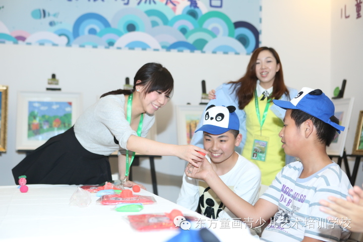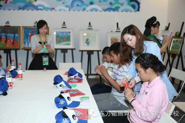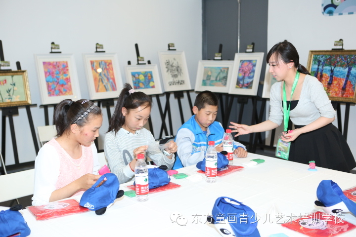东方童画的老师们带领孩子们做手工,小朋友们一个个都很认真。