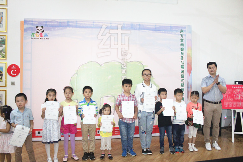 东方童画校长唐骁栋先生为艺树上的48幅作品学员颁发优秀学员证书,肯定他们的成绩,激励他们画出更好的作品。