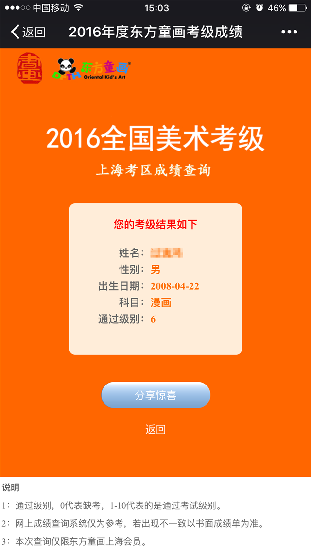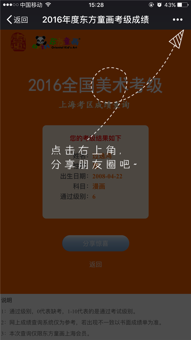 东方童画学员2016年度全国美术考级上海考区成绩公布咯!一起了解一下查询方式吧~