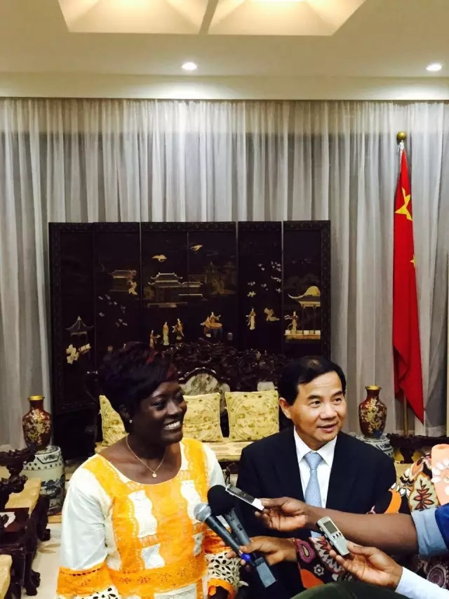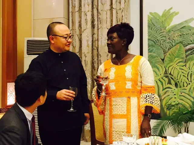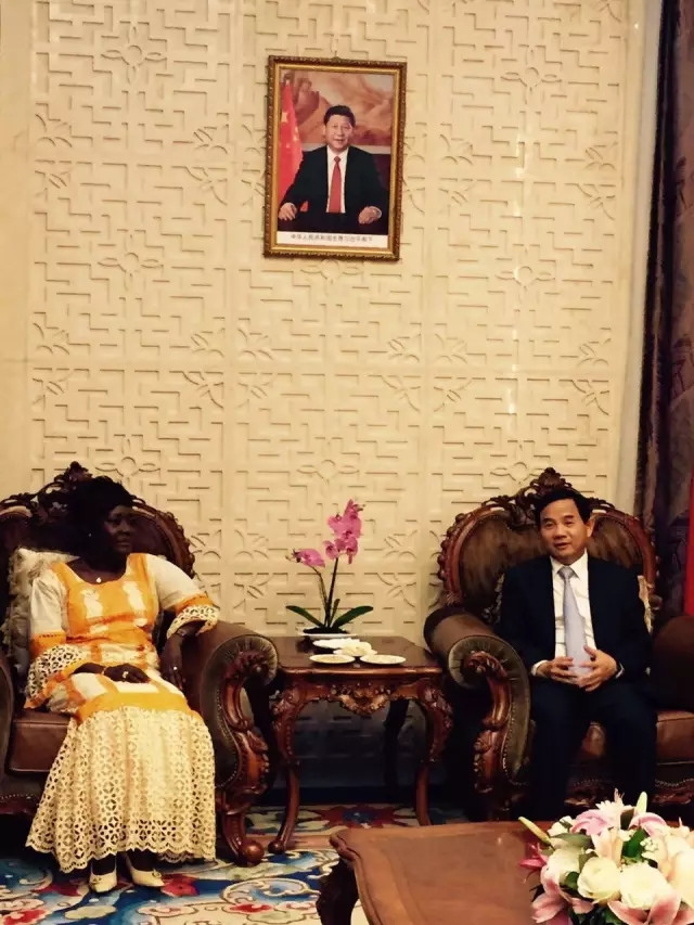 科特迪瓦妇女儿童部长安妮·德西雷·乌洛托女士与中国驻科特迪瓦共和国全权特使唐卫斌先生