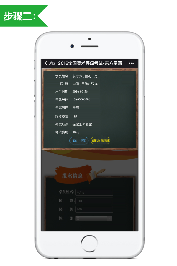 仔细核对填写信息是否正确,正确点击“确认报名”,如信息有误请点击“修改”;