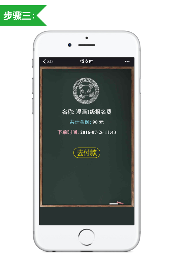 随后进入付款页面,点击“去付款”进行微信支付报名;
