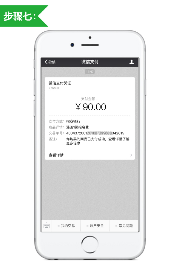 支付成功后,请保留微信支付凭证,凭此凭证前往校区索取付费收据。