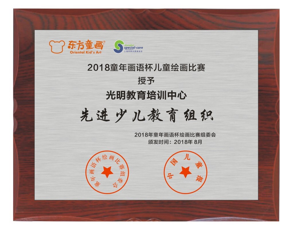 集体组织参赛当届累计100幅以上:授予“先进少儿教育组织”,颁发牌匾。