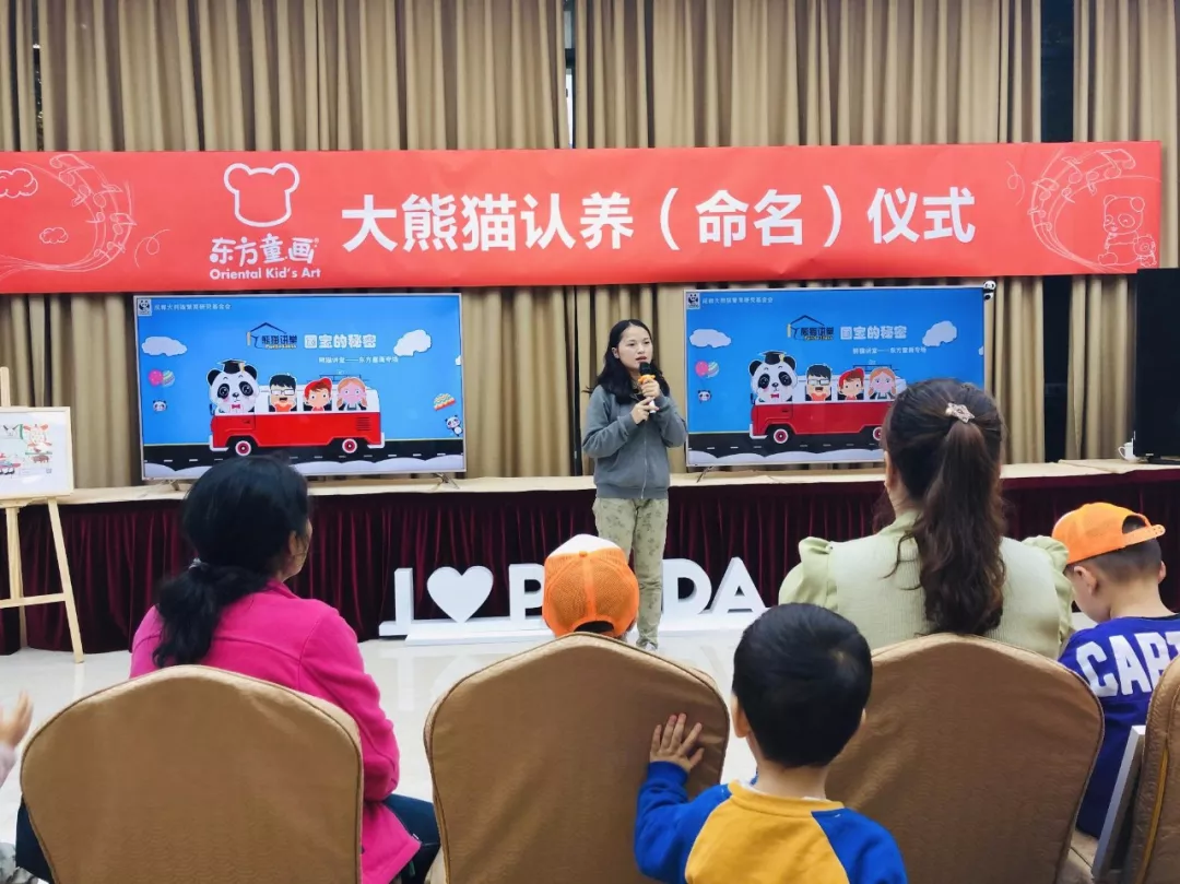 在随后的环节中,成都大熊猫繁育研究基金会不仅为现场的青少儿准备了专业的《熊猫小讲堂》,还安排了专业人员指导东方童画领导与小朋友代表共同体验,为“童画画”制作了精美的食物。