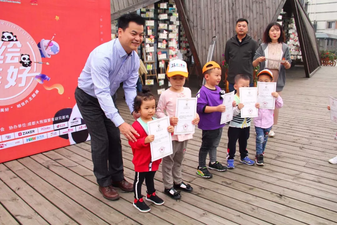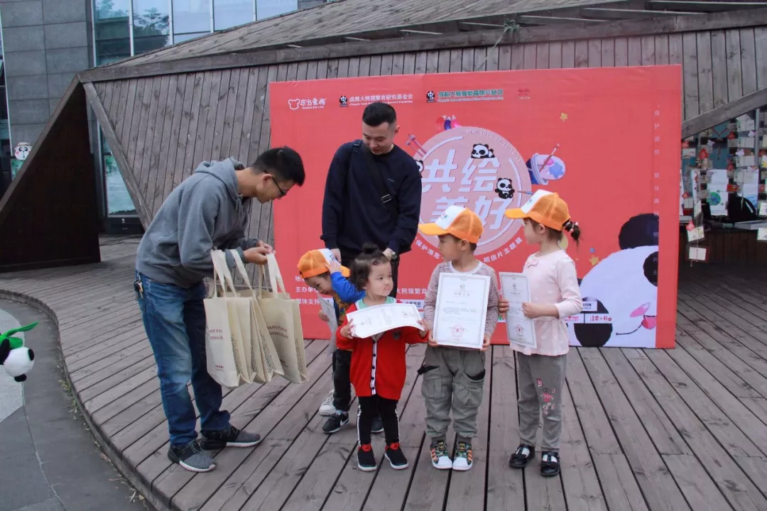 在活动尾声,东方童画与成都大熊猫繁育研究基金会的领导来到大熊猫“雅韵”的宿舍,共同进行了“童画画”名字铜牌的揭牌仪式,现场的小朋友也向成都大熊猫繁育研究基金会赠送了承载着代表全国孩子们美好祝愿的美术作品,象征着东方童画与成都大熊猫繁育研究基金会和濒危动物保护事业永远在一起。